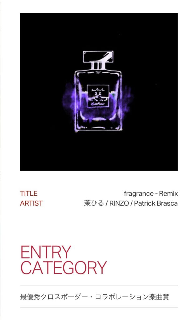 この度「MUSIC AWARDS JAPAN 2026」の「最優秀クロスボーダー・コラボレーション楽曲賞」部門にて、アーティストの『茉ひる』の楽曲「fragrance- Remix」がエントリーされました。